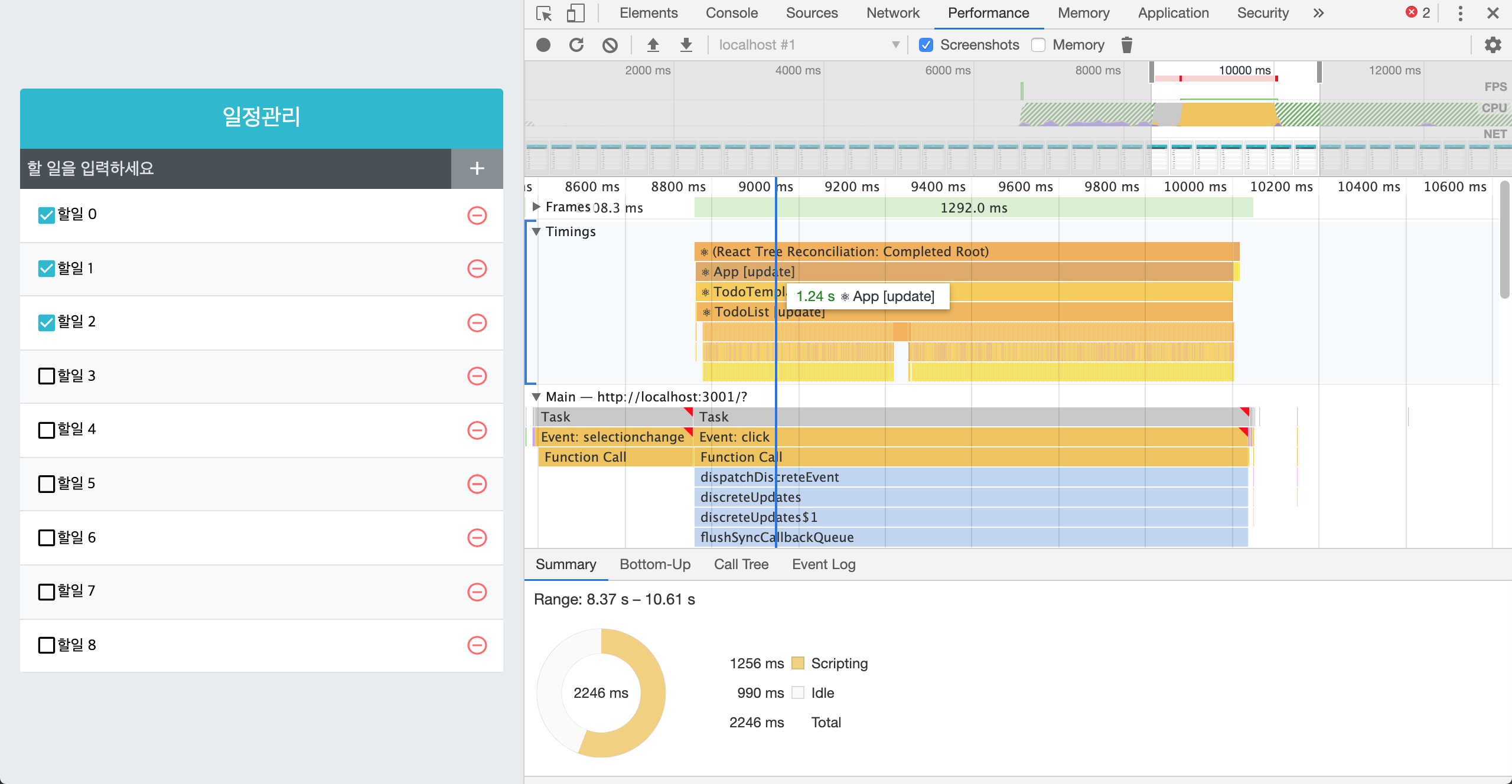 추가되어 있는 데이터가 무수히 많아지면, 애플리케이션이 느려집니다. 이러한 현상으로 렌더링 최적화를 하여 성능을 높여봅시다.