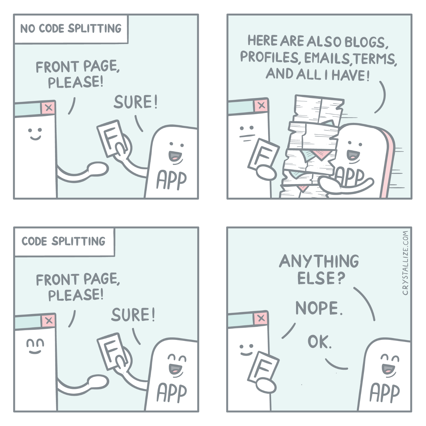 - 페이지들이 각각의 javascript 번들로 분리