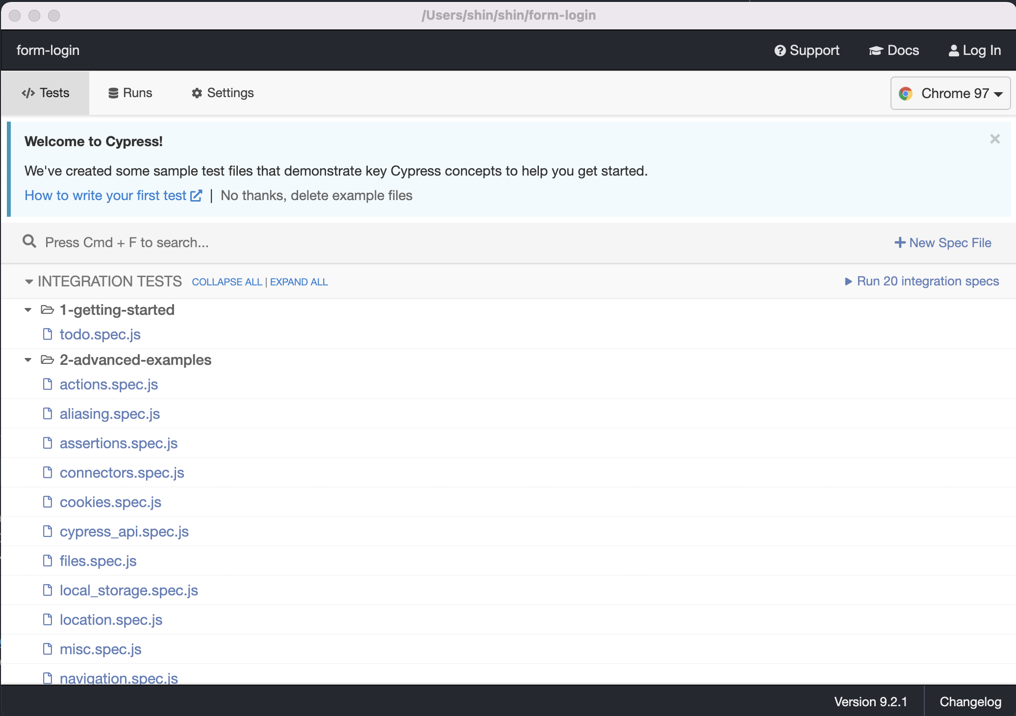 // cypress > integration > 생성폴더 > 생성파일명.spec.js
