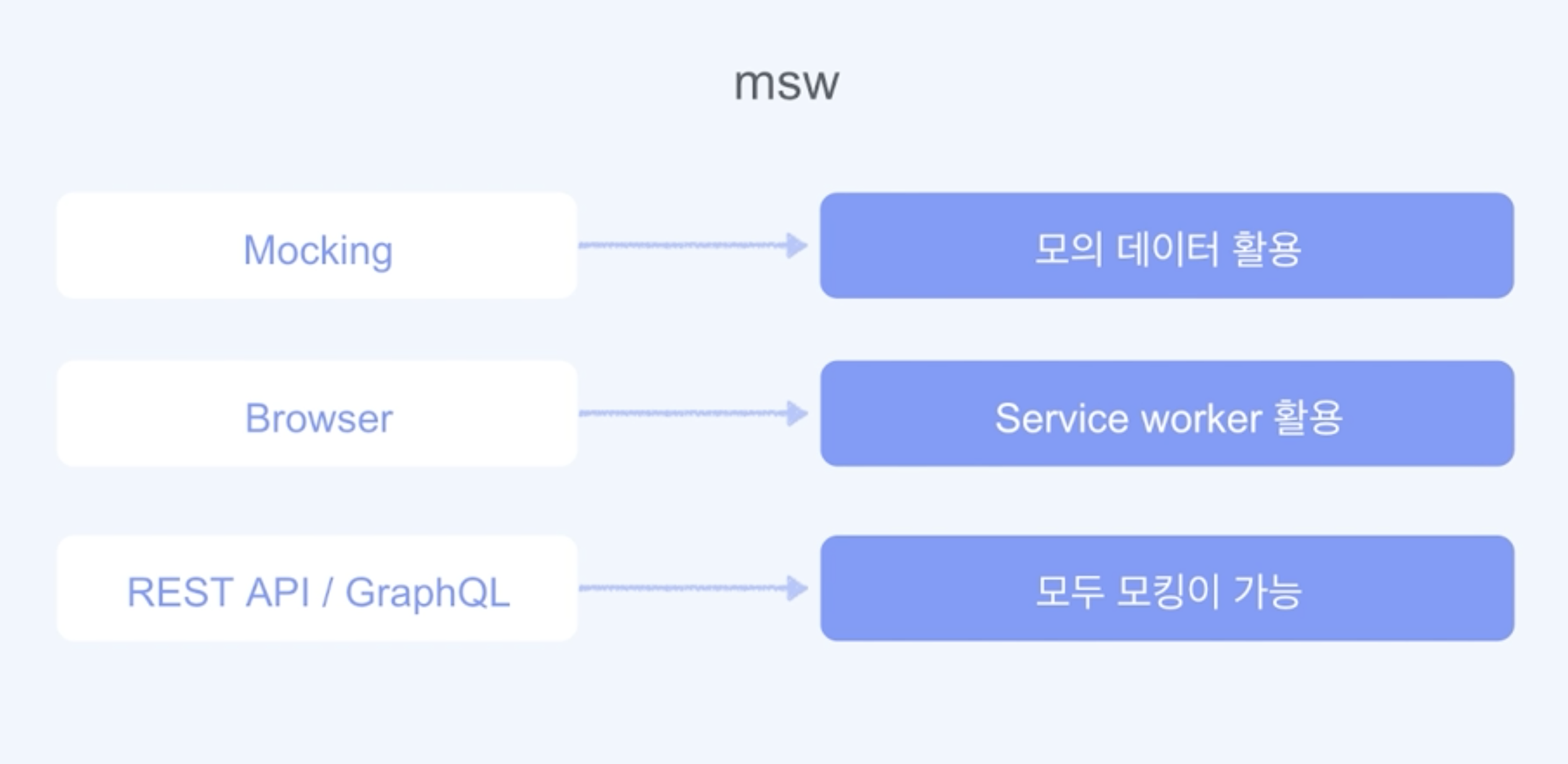 서버가 없는 경우, API요청으로 내려올 데이터를 프론트에서 모킹하거나 서버의 역할을 해주는 무언가가 필요합니다.