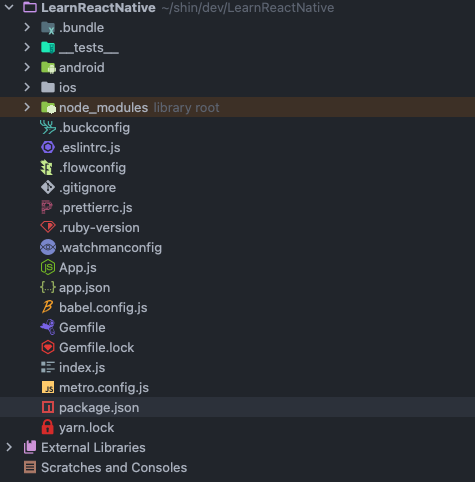 리액트 네이티브를 설치하면 ios 폴더와 안드로이드 폴더가 생성됩니다.